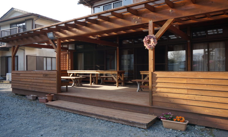山中湖湖畔の木造宿に